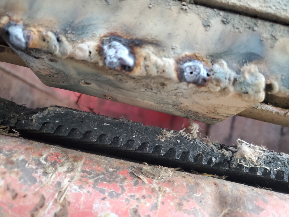 We welded new guide plate for the sliding door. Not the prettiest picture, but the square tube of the door frame was badly rusted and I had to do the work upside down.